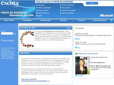 O Portal Ponto de Encontro - Educadores em Rede, mantido pela Fundação Victor Civita através do canal Nova Escola Online, em parceria com a Microsoft, apontou a Profª Cláudia Almeida como Professor em Destaque no Portal neste mês de Outubro.